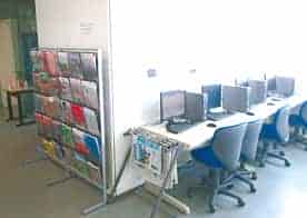 可以在圖書館自習,電腦隨時可自由使用。使用電腦能與本國的家人享受免費的通話。